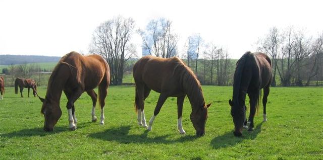 PFLEGE: Das Gras wird an einigen Stellen sehr tief abgebissen. An den Kotstellen und weniger schmackhaftes Gras wird nicht gern gefressen; das Gras wird überständig und muß regelmäßig abgemäht werden. So verjüngte sich der Bestand und die Grasnarbe wird dichter. Außerdem wird verhindert dass unerwünschte Gräser aussamen und sich ansiedeln. Ein Abschleppen der Weide zur Verteilung des Kots ist nicht sinnvoll, da die Anzahl der Meidstellenanteil dadurch erhöht wird. Besser ist ein Absammeln der Pferdeäpfel.